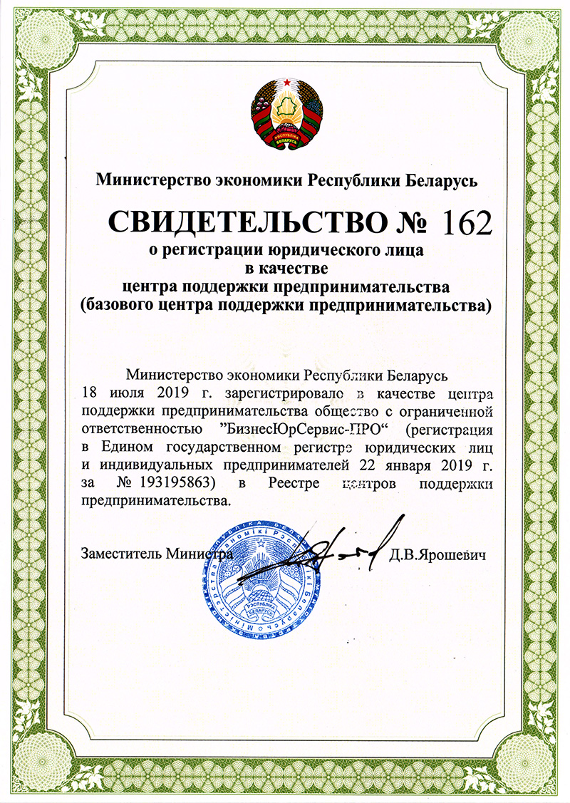 БизнесЮрСервис-ПРО - компания, основной целью которой является помощь в регистрации и дальнейшей поддержки субъектов малого бизнеса в Беларуси. В помощь в регистрации новых ИП и юридических лиц мы разработали сервис, который в автоматизированном режиме подготовит все необходимые документы для старта бизнеса в Беларуси.